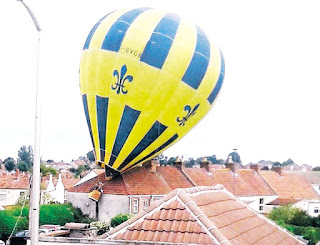 BRISTOL, Britain - Sebuah belon panas merempuh deretan rumah selepas melanggar wayar telefon, lapor sebuah akhbar semalam.